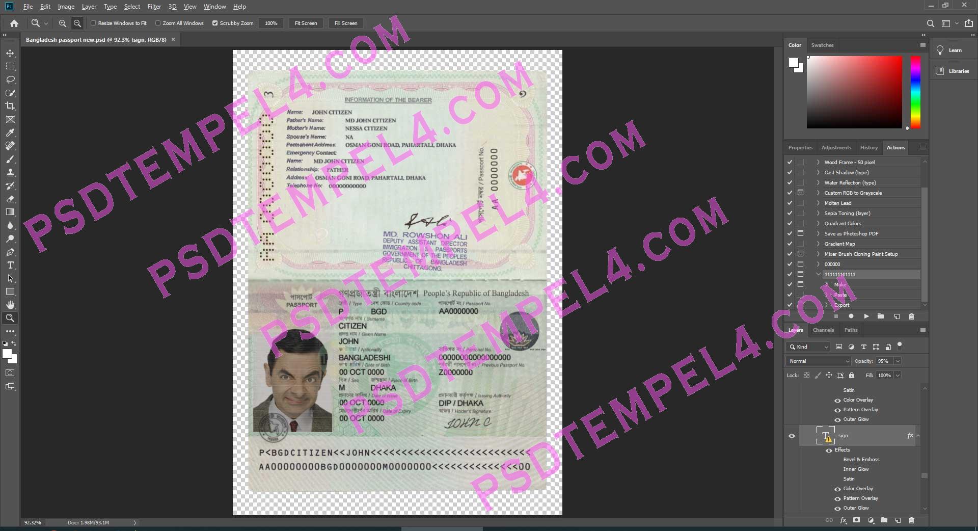 Fake Bangladesh passport PSD Photoshop buy Online