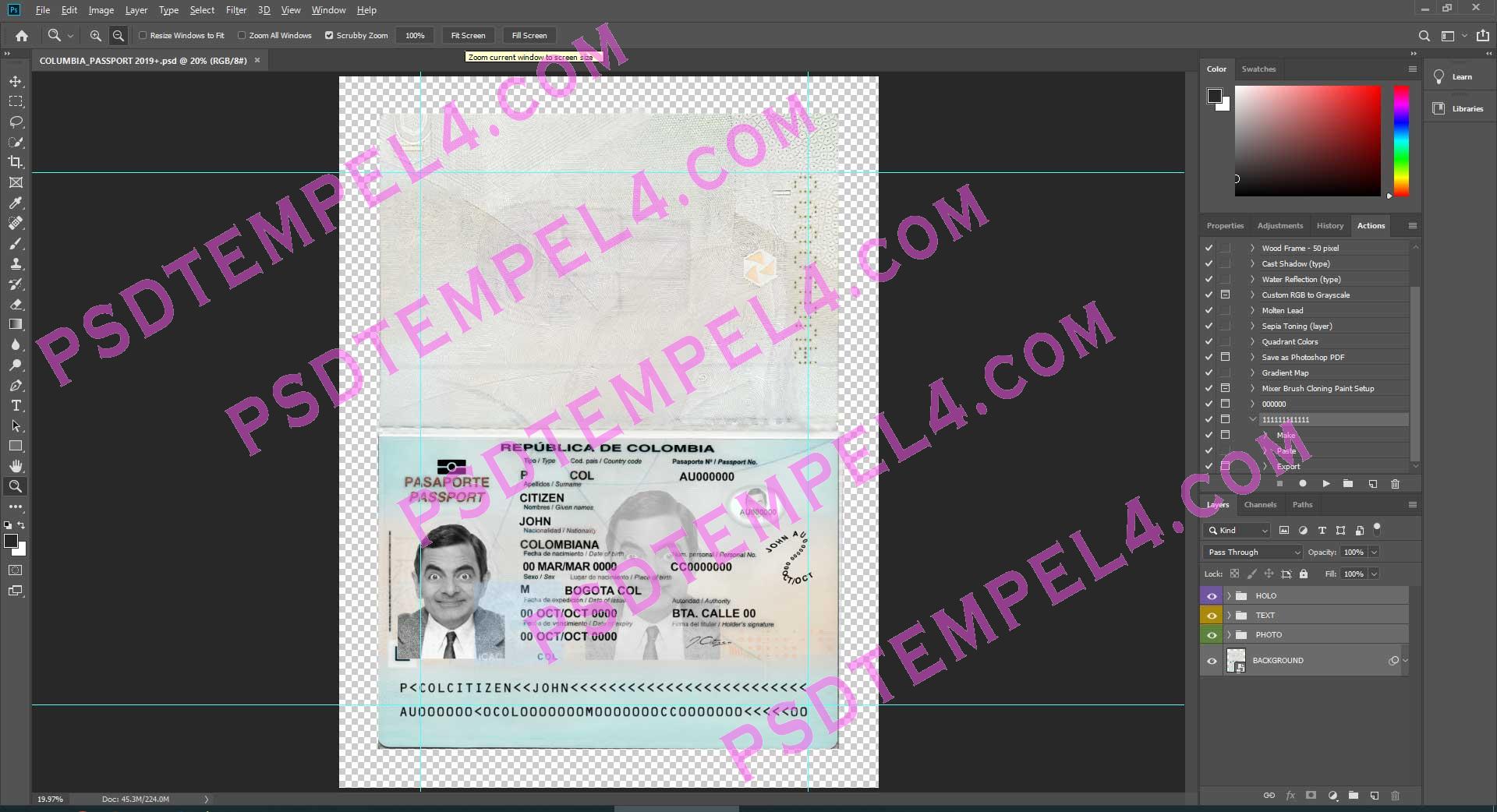 Fake Colombia passport PSD Photoshop buy Online