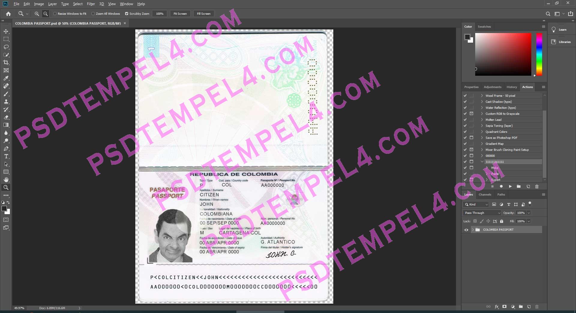 Download Colombia passport Photoshop PSD File Template Fully Editable