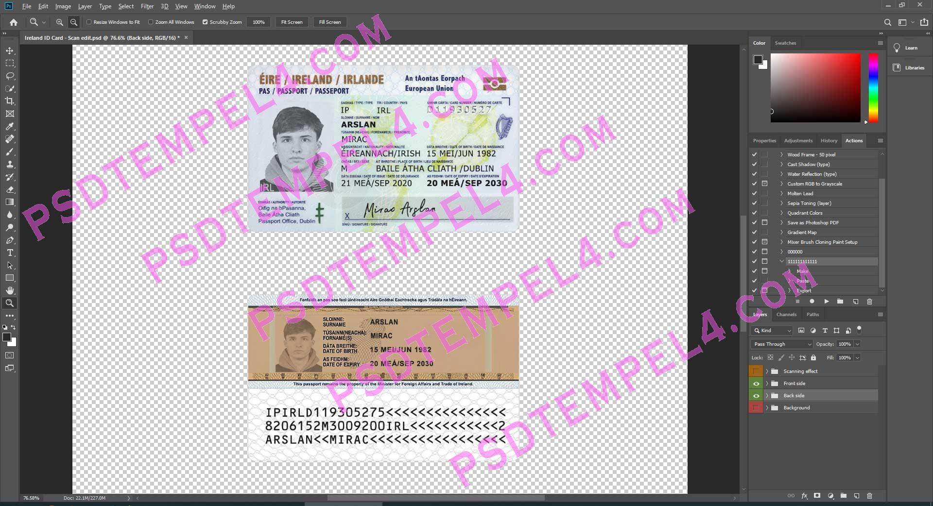 Ireland id card psd template fully editable high quality