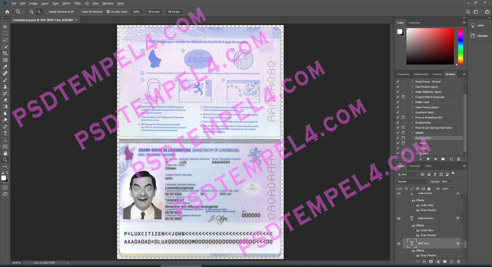 Download Luxembourg passport Photoshop PSD File Template Fully Editable