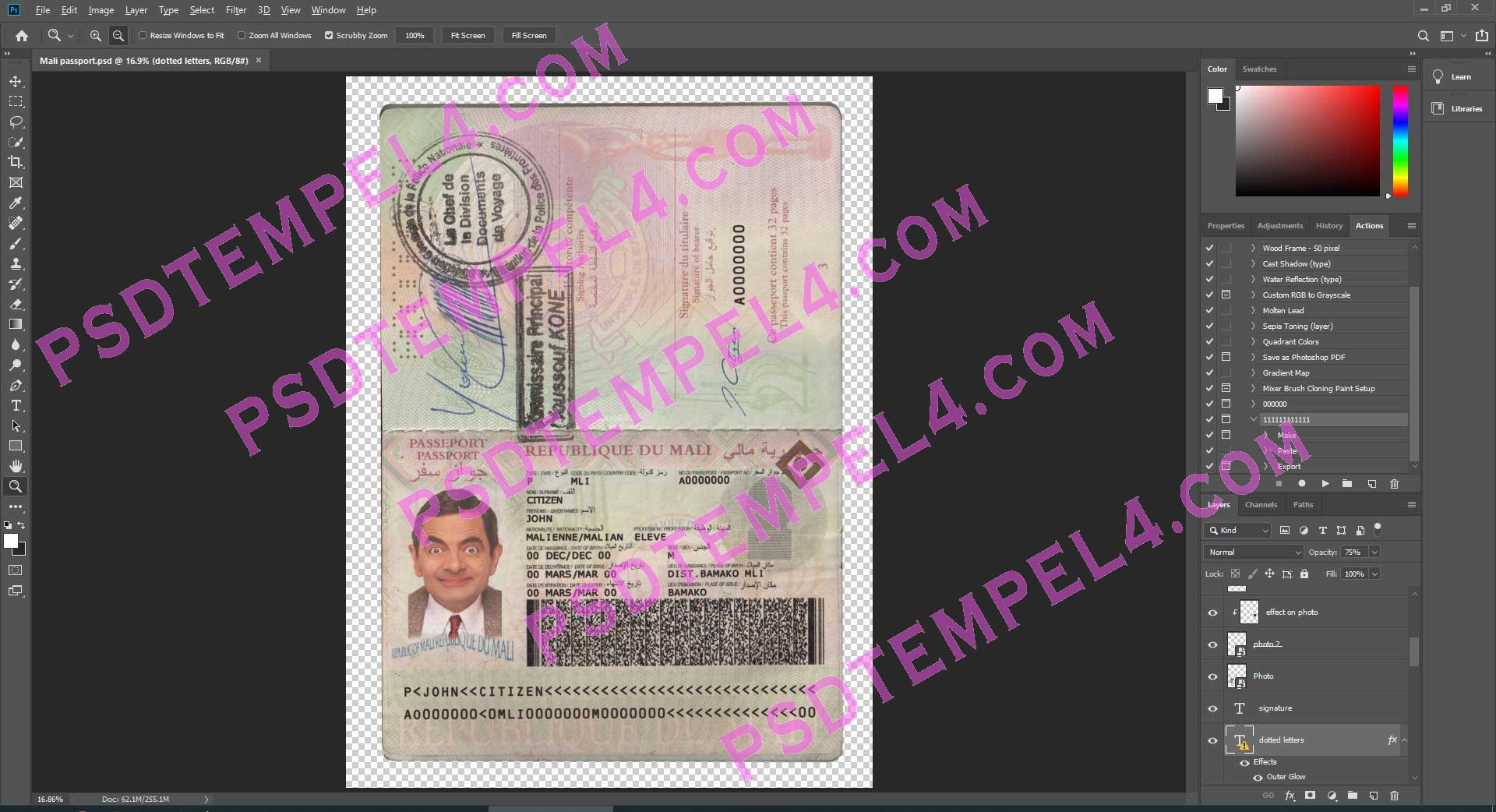 Download Mali passport Photoshop PSD File Template Fully Editable