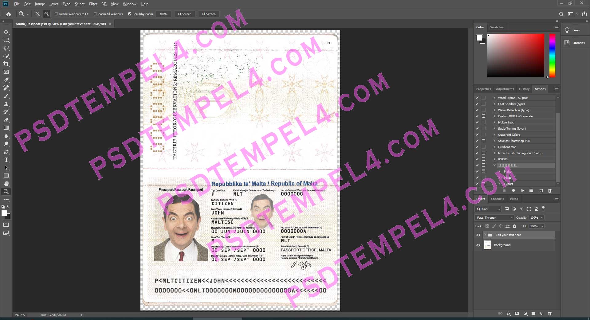 Download Malta passport Photoshop PSD File Template Fully Editable
