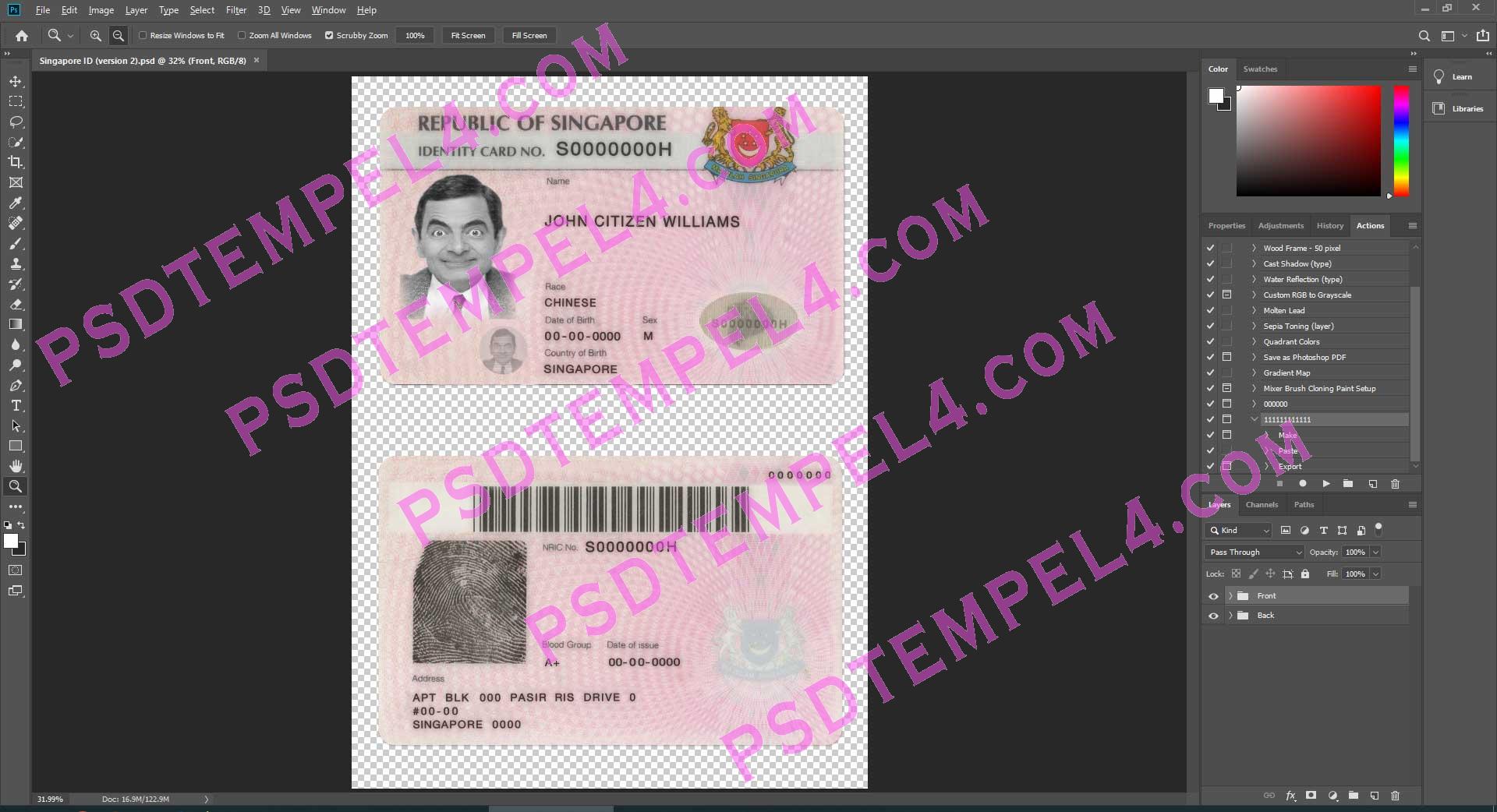 Download Singapore national id card PSD File Photoshop Template Fully Editable